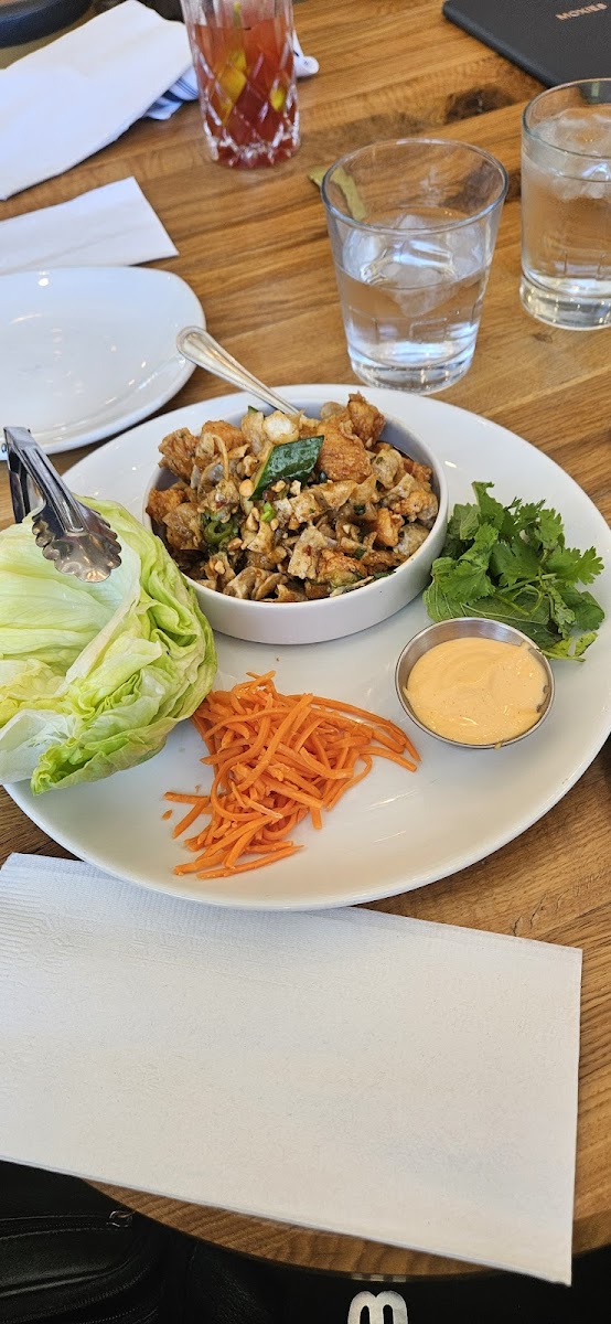 The menu leans into approachable bar & grill classics with some thoughtful twists—options like the Lettuce Wraps and Chipotle Mango Chicken bring a bit of brightness to the table, while the variety runs from hearty burgers and ribs to lighter salads like the Thai Chicken and Chimichurri Steak. Vegetarians aren’t left out either, with choices such as the Beyond Meat Burger. This variety makes it a spot that works well for groups with different tastes looking to share a relaxed meal.